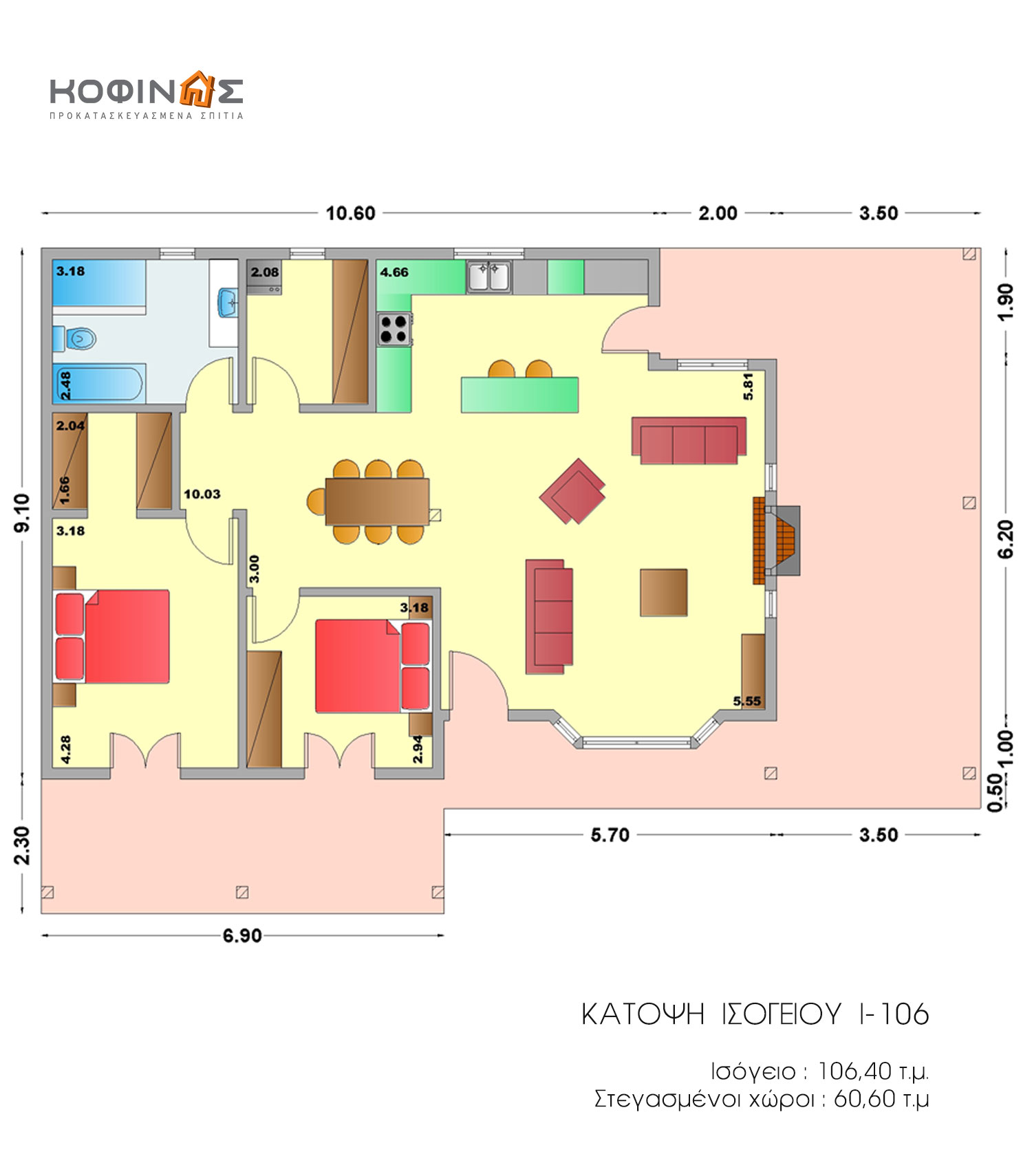 Ισόγεια Κατοικία I-106, συνολικής επιφάνειας 106,40 τ.μ.